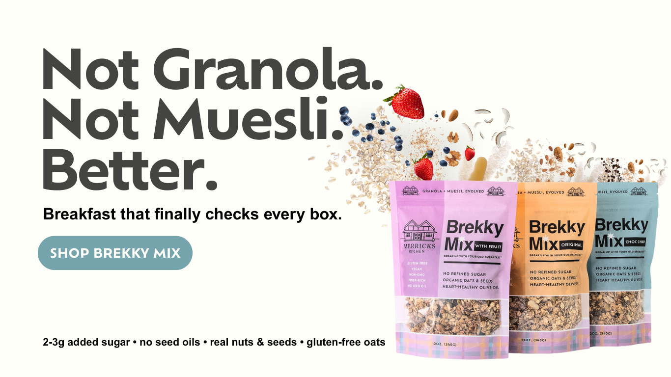 We started Merricks Kitchen because breakfast felt broken. Too much sugar. Too many seed oils. Not enough joy. Brekky Mix is our way of making mornings worth waking up for.