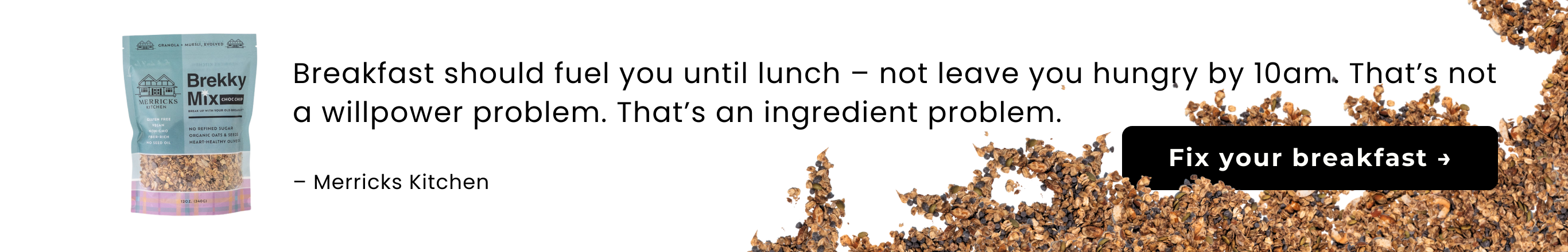 Ready to experience granola designed around expert nutritional standards? Brekky Mix represents two years of market research, ingredient research, and formulation optimization. Learn more about the Merricks Kitchen story and try the granola we created after discovering what the market was missing. Use code HEALTHY15 for 15% off your first order at MerricksKitchen.com.