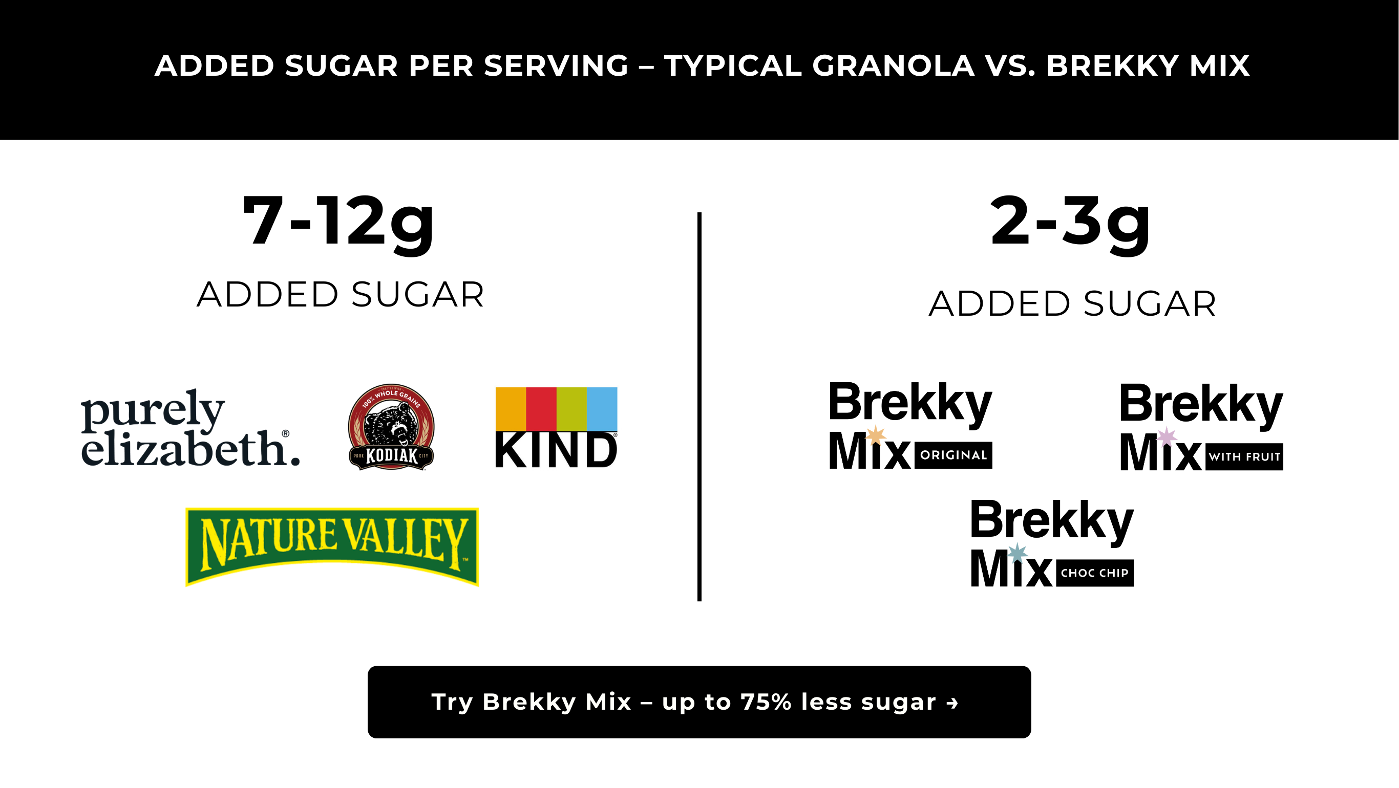 This comprehensive analysis examines sugar content across 40 plus brands standardized to 1/3 cup serving size. Brekky Mix all three varieties contain only 2 grams added sugar. Purely Elizabeth contains 7 grams when standardized. Nature Valley 9 grams. Bear Naked 5 grams. All exceed the 2 gram exceptional standard that Brekky Mix achieves through premium ingredients like Ceylon cinnamon and Madagascar vanilla powder.