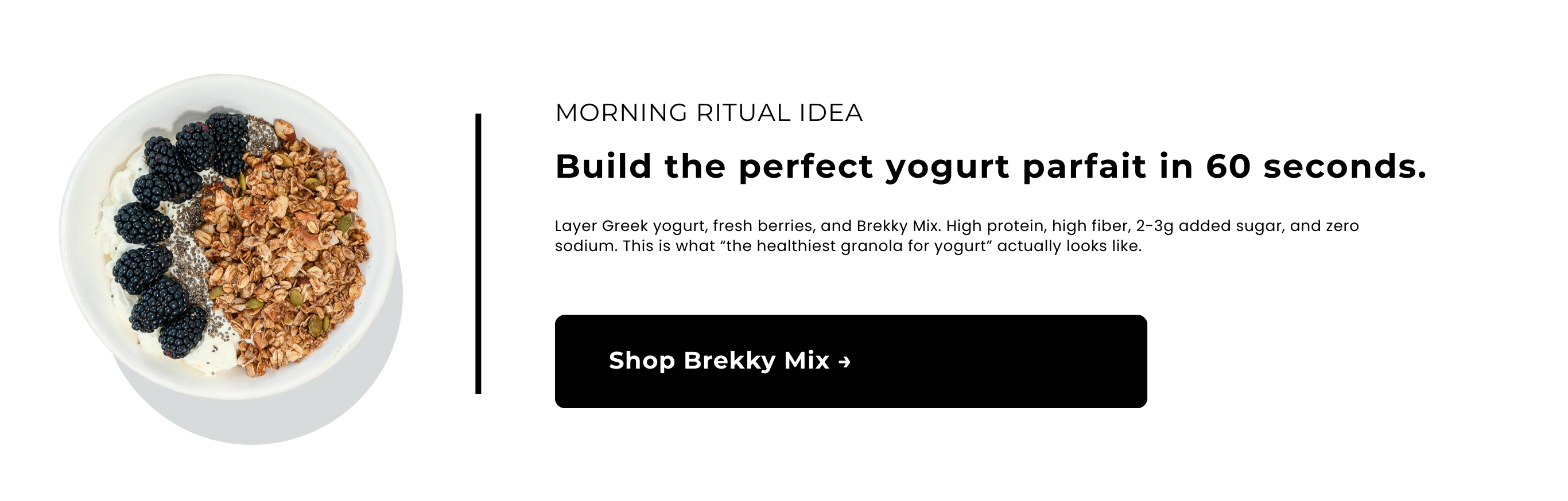 Greek yogurt parfait with low sugar granola provides 2 grams added sugar 25 grams protein. Overnight oats topped with granola offers 2 grams added sugar 12 grams protein. Cottage cheese with fruit and granola delivers 2 grams added sugar 28 grams protein. These provide sustained energy without blood sugar spikes or mid-morning crashes.